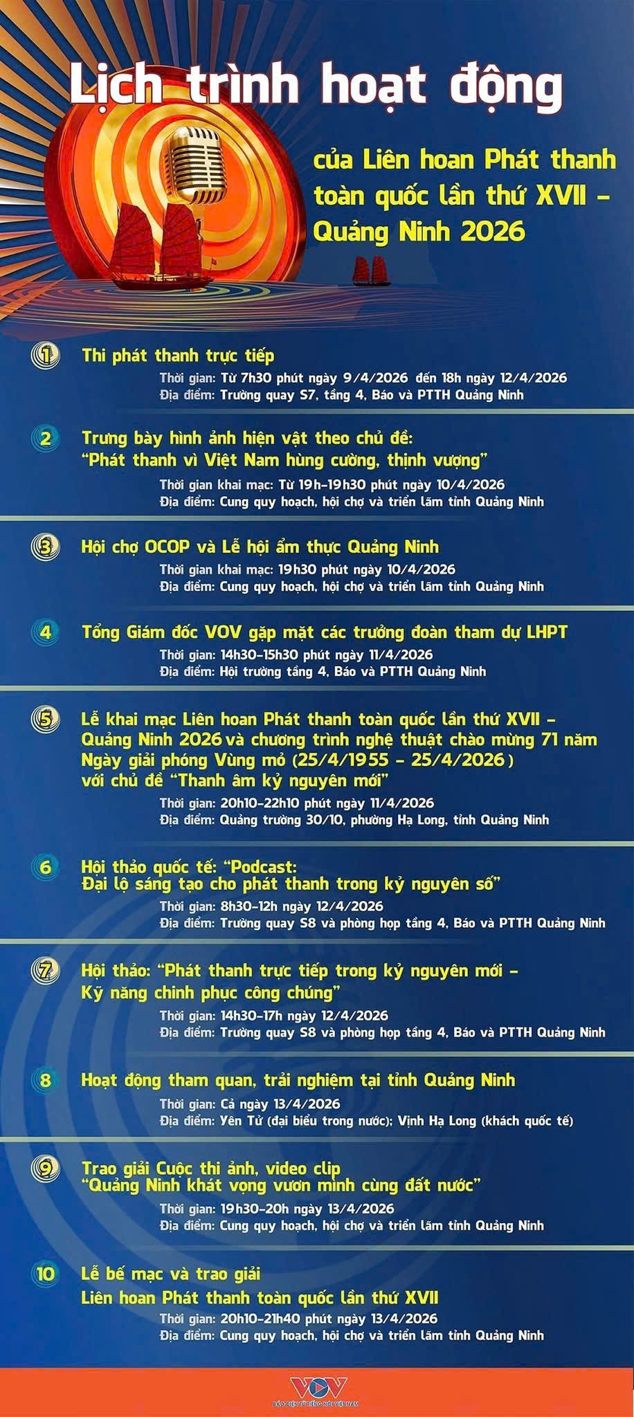 Lịch trình hoạt động Liên hoan Phát thanh toàn quốc lần thứ XVII - năm 2026 tại Quảng Ninh